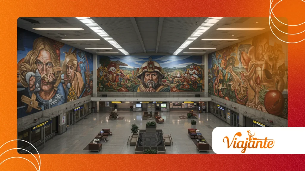 The murals are located in various parts of the airport, with the most well-known pieces being found in the Jeppesen Terminal.
